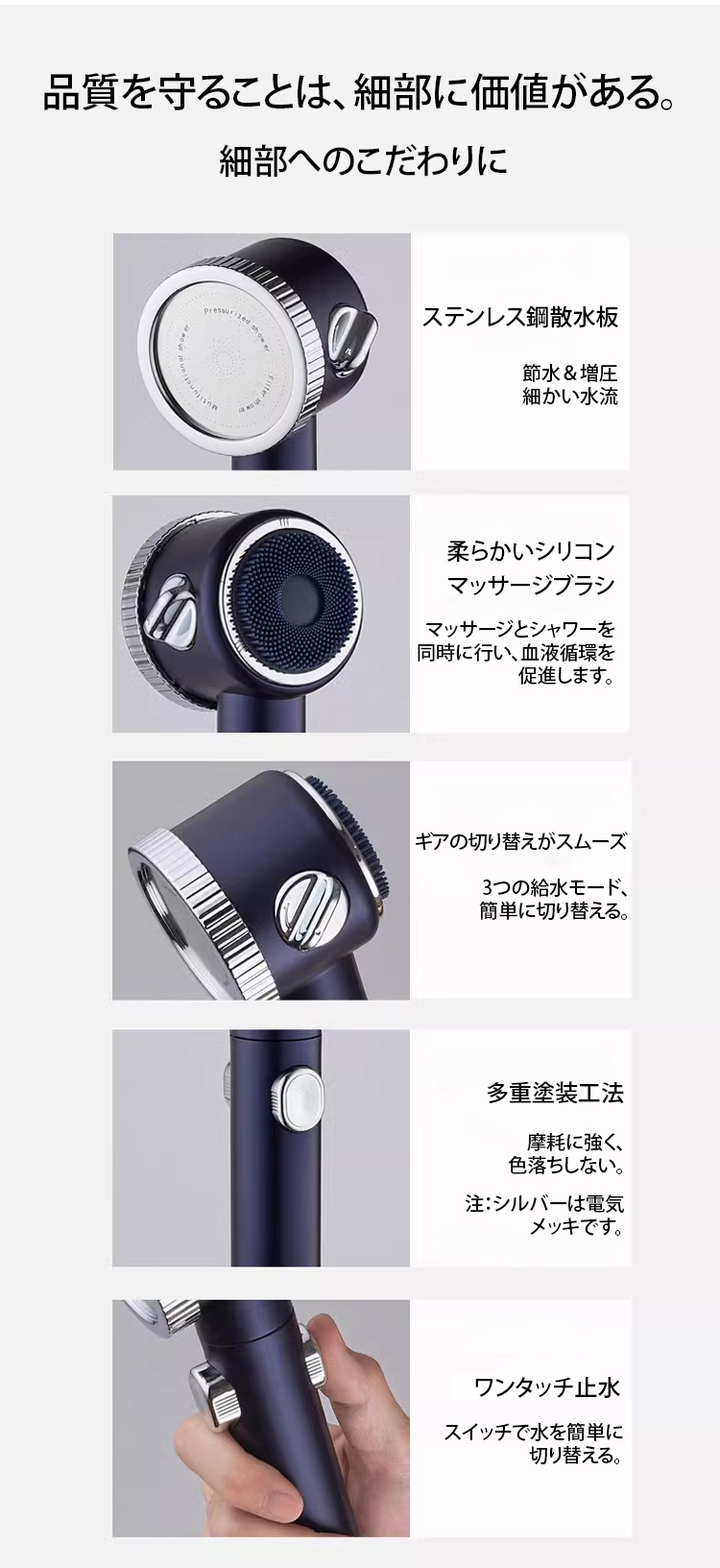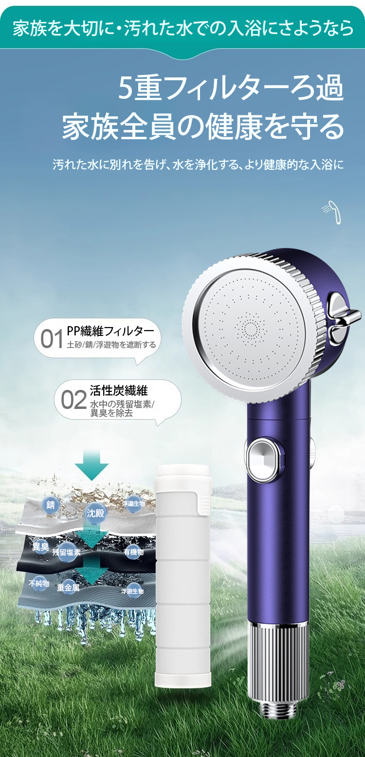 加圧フィルター式マッサージシャワーヘッド